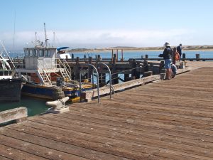 In addition the strong currents often push along a seemingly unending amount of eelgrass, heavy/massive/ponderous/oppressive amounts, that soon cover every rope in the water and make it nearly impossible to fish. Every time you drop your line down into the water it will be quickly covered by the eelgrass and soon you’ll be muttering to yourself. On such days, take a break or move over to Cayucos. Luckily, most of the time the water around the piers is more conducive to fishing. (The currents and grass are primarily a bay phenomenon but the only other place I have seen such currents and eel grass in this quantity is up in Humboldt Bay by Eureka; there too an angler can be forced to terminate the fishing day in frustration.)